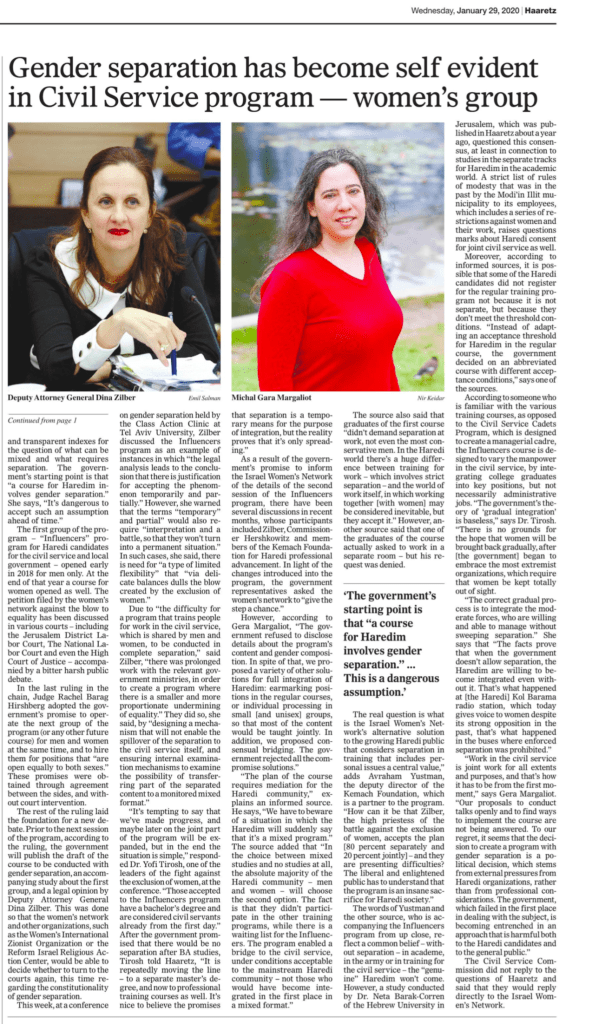 Winter 2020 is bringing with it a new frontier of sex-segregation, this time in professional training for the civil service. Read the Haaretz report, with my legal analysis, here, or here: