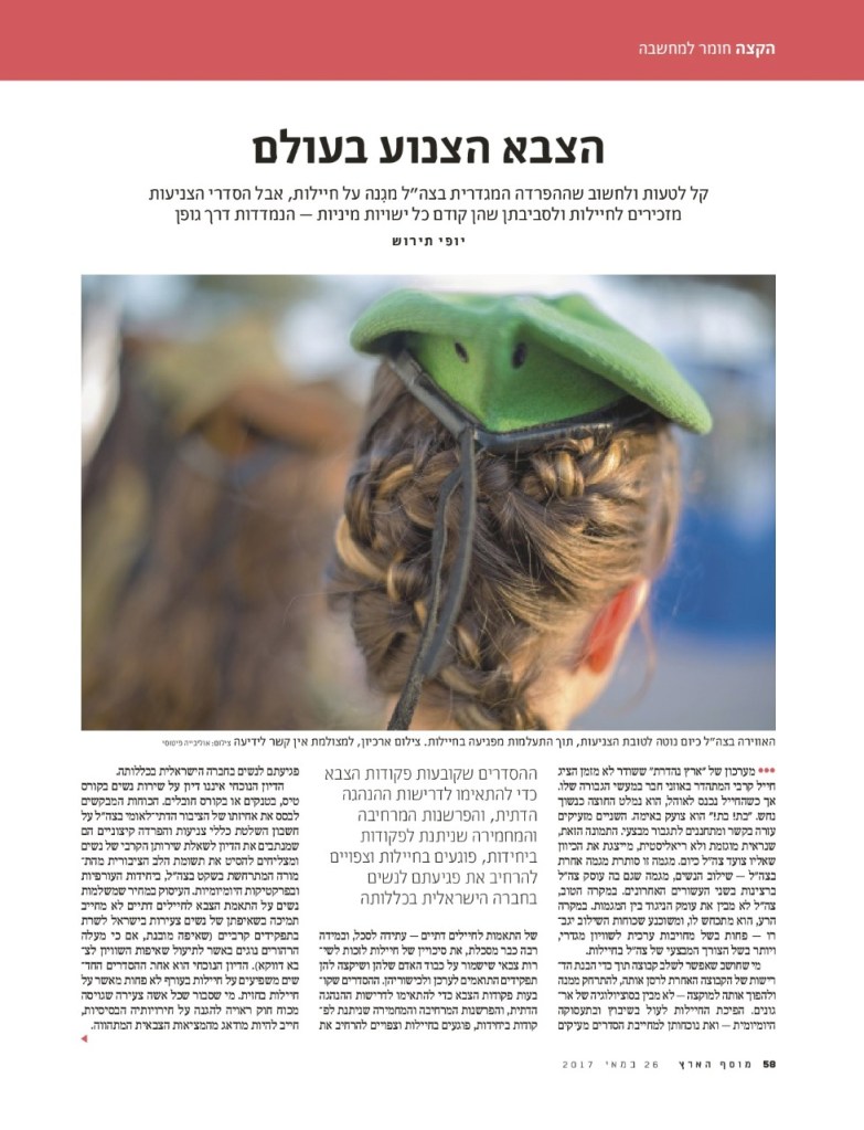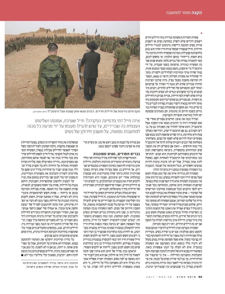 ביקורת ״פקודת השירות המשותף״ (לשעבר ״פקודת השילוב הראוי״) ויישומה המעוות בפרקטיקה הצה״לית, שהופכת כל חיילת ל״פיגוע צניעות פוטנציאלי״ (מאי 2017)