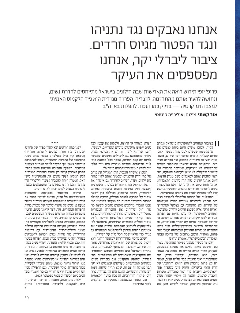 כל החומרים על הפרדה בין המינים באקדמיה באתר נפרד, כאן.